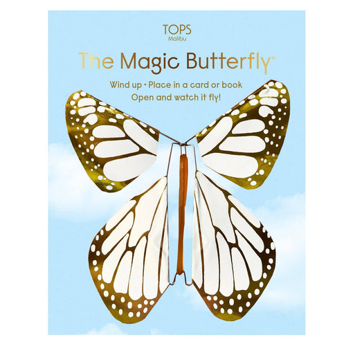 Magic Flying Butterfly White and Gold Metallic