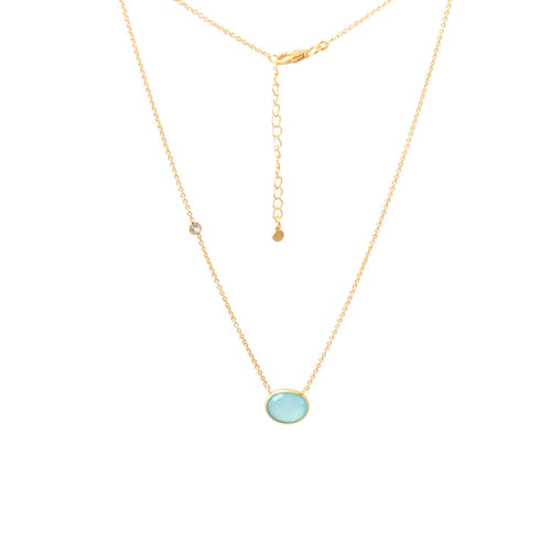 Aqua Chalcedony Oval Pendant with White Topaz