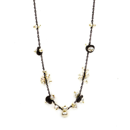 Calliope - Delicate Pearl and Ox Silver Chips Necklace