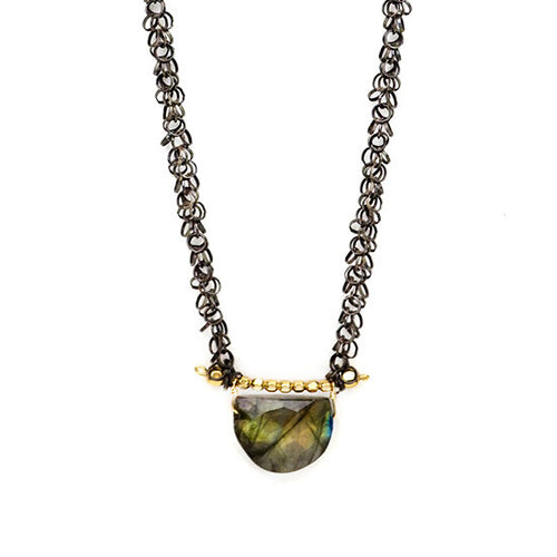 Calliope - Lab Half Moon w/ Gold Beads Necklace