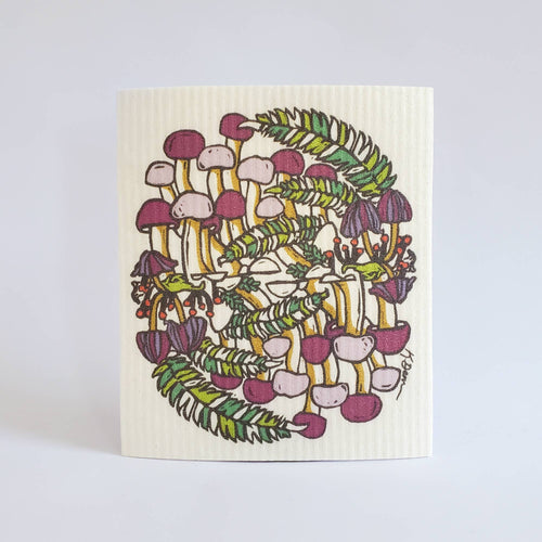 Eco-Friendly Dishcloth Fall Mushroom Design, Swedish Towel