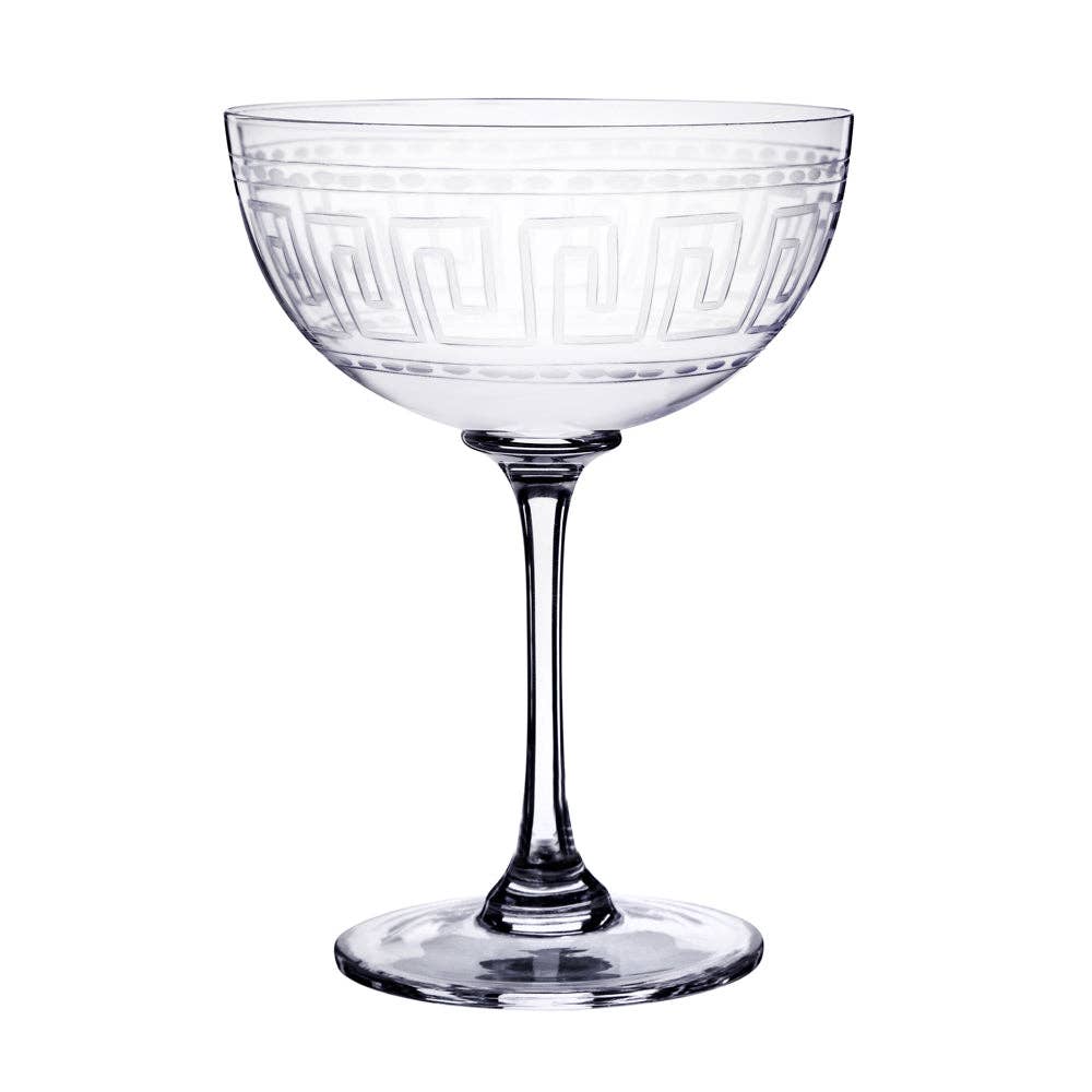 Please select design from drop-down list below. Each glass has been hand-blown and hand-engraved. Our champagne glasses are made from lead-free crystal. Our engraved glassware is dishwasher safe. The coupes with gold rim design should be hand-washed. Dimensions: * 11.5cm tall; 8.5cm wide. Capacity: 150 ml. * 4.5" tall; 3.4" wide. Capacity: 5 oz.