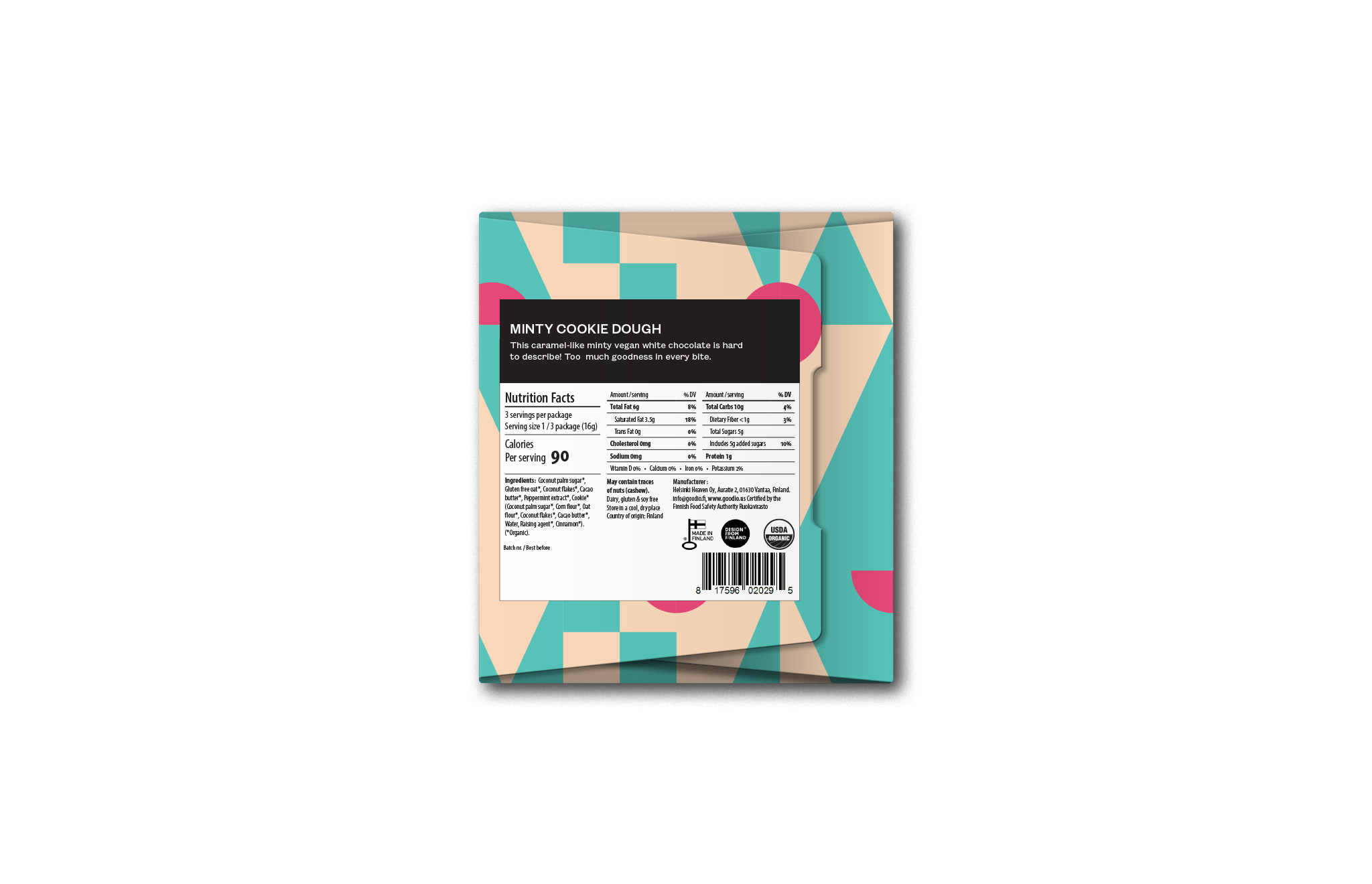 This bar is proudly handmade with love in Finland - the happiest country in the world by Goodio Chocolate Artists.