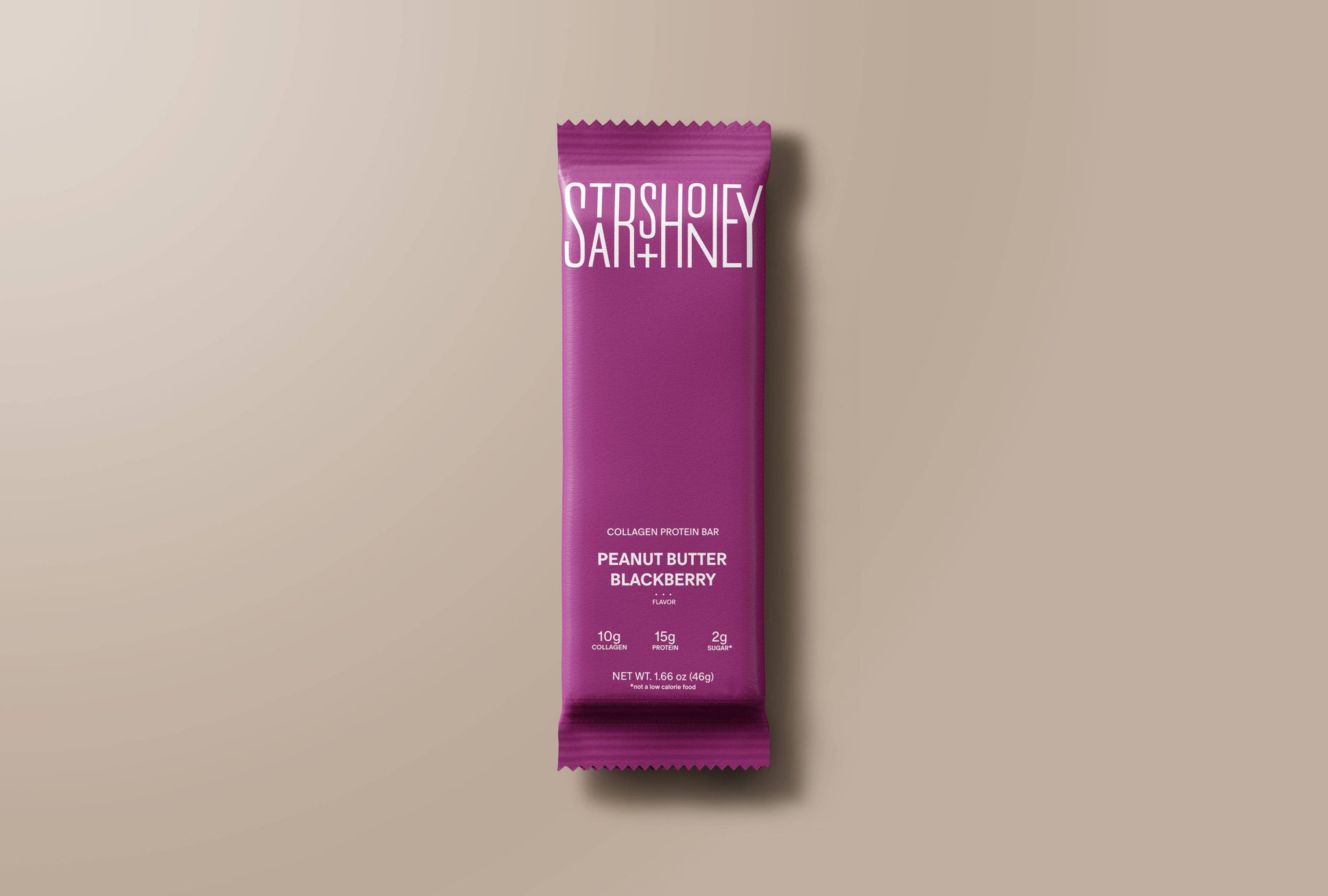 The Collagen Protein Bar. An elevated take on the classic children’s sandwich – PB&J. Real blackberry pieces with savory roasted peanuts. Suggested MSRP for a singular bar: $3.50 - $4.00 INGREDIENTS: COLLAGEN, PEANUTS, TAPIOCA FIBER, ALLULOSE, DEFATTED PEANUT FLOUR, PEA PROTEIN, SUNFLOWER LECITHIN, ORGANIC VEGETABLE GLYCERIN, OATS, OAT FIBER, OAT BRAN, BLACKBERRIES, COCONUT OIL, NATURAL FLAVORS, ACACIA GUM, SEA SALT, BLACKBERRY POWDER, MONK FRUIT.