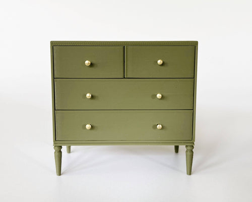 Modern 4-Drawer Miniature Dollhouse Dresser: Olive / Antique Brass (Gold)