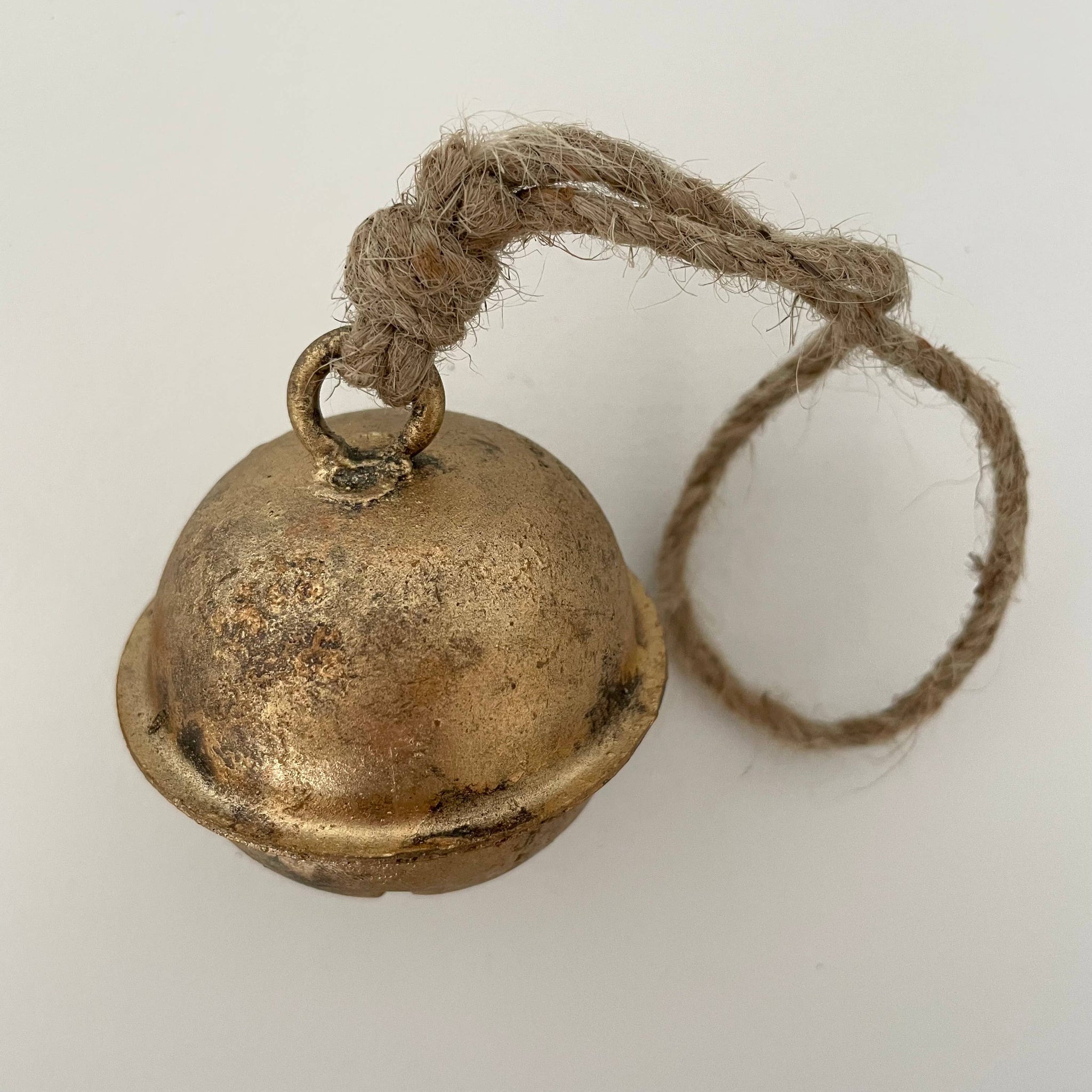 Each bell measures approx. 2 1/2" from top of handle to bottom of bell and is 2 1/2" in diameter. Jute hanger is approx. 5" long. The last photo shows the size difference between this sleigh bell and the 2 1/2" size.
