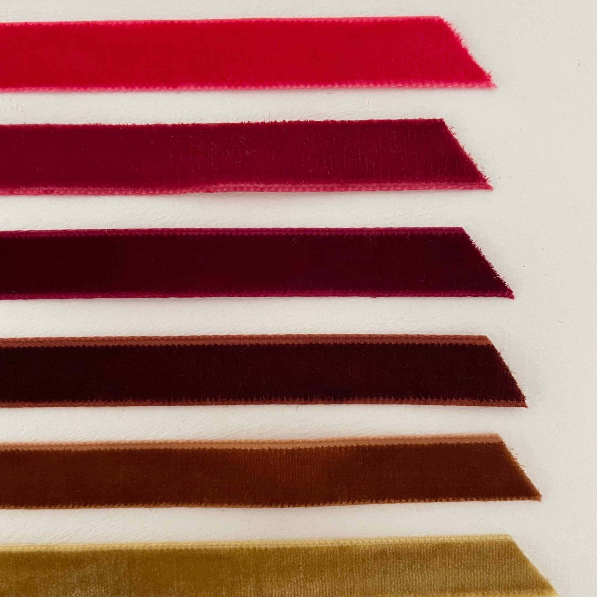 Bells are handmade in India & then strung onto velvet ribbon by fort & field! 16 color-ways of 100% polyester velvet 3/8" wide ribbon made in Vietnam! Each bell measures approx. 2" from top of handle to bottom of bell. The bell body is approx. 1 3/4" long and 1" in diameter. The ribbon is approx. 4 1/2" long. Metal striker. As each bell is handmade, no two bells are exactly the same. Variations are to be expected in size, shape, finish, and color. Some bells have a multi-colored or orange/red finish. Since these are made from recycled tin and hand formed, occasionally the bottom of the bell is not completely straight, the handle may be slightly mis-shaped, or there may be small dents (see photos). Individually packaged in a plastic bag. Please note: Brass finish could rub off onto ribbon. I dab ends of the ribbon w/ "fray check" to mitigate fraying. Makes ends stiff. Backside will show "fray check" and some colors will seep small amount in front of ribbon (see photos).