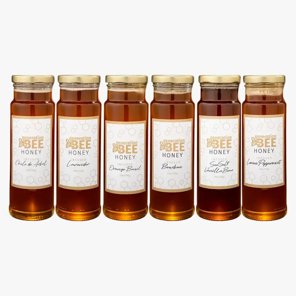We have paired our honey with interesting and delicious flavors, hand-selected and beautifully packaged in 12 oz glass jars with gold lids. These stunning jars are the perfect addition to any gift basket. Pair them with other honey related items and tie with twine to make a unique gift set, perfect for so many occasions. Whether a host / hostess gift, birthday present or a flavorful addition to any charcuterie board, our honey always makes for a sweet surprise.