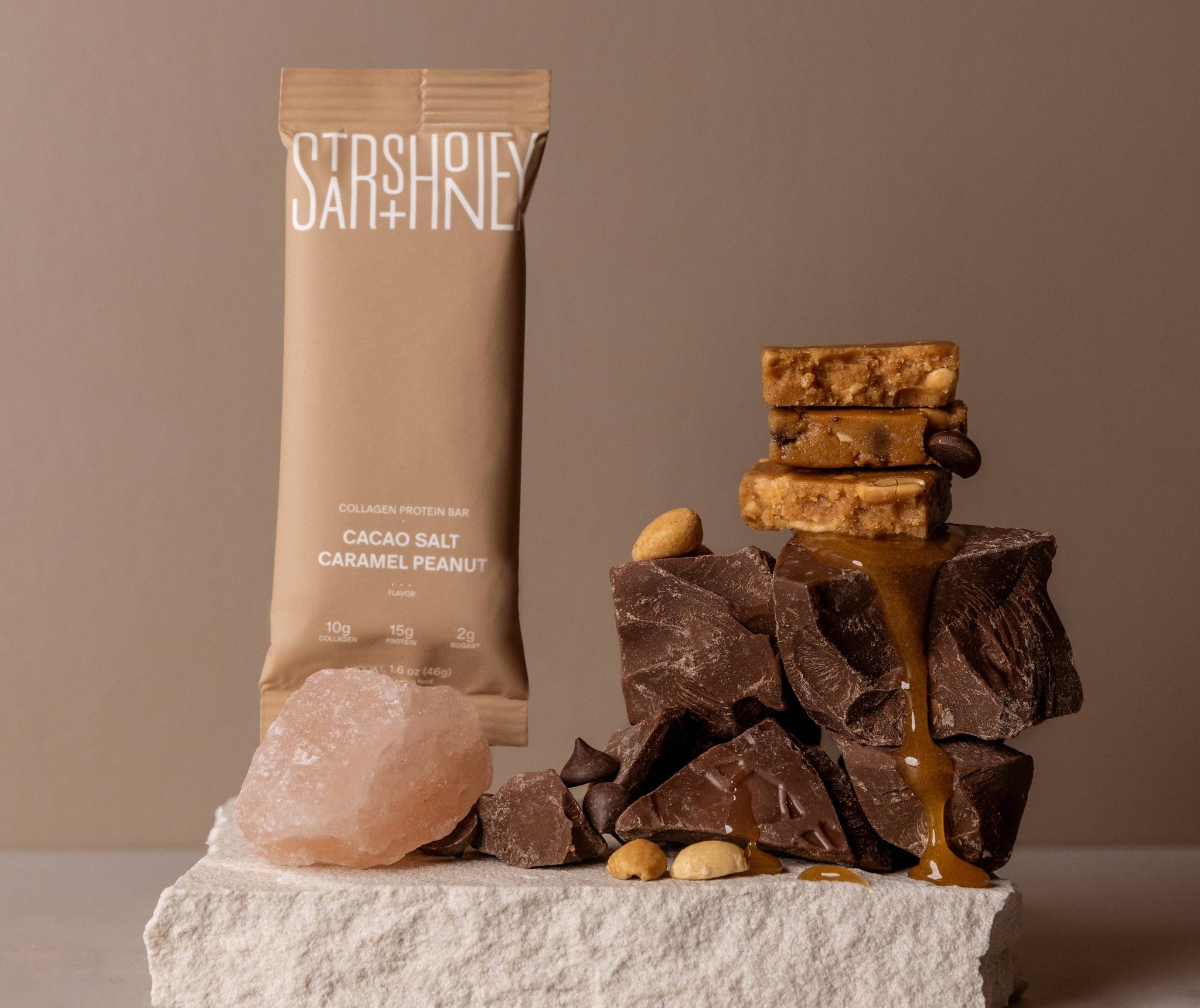 INGREDIENTS: COLLAGEN, PEANUTS, TAPIOCA FIBER, ALLULOSE, PEA PROTEIN, SUNFLOWER LECITHIN, ORGANIC VEGETABLE GLYCERIN, DEFATTED PEANUT FLOUR, COCOA BEANS, COCONUT SUGAR, COCOA BUTTER, COCONUT OIL, ALMONDS, SEA SALT, NATURAL FLAVORS, COCOA POWDER, ACACIA GUM, MONK FRUIT.