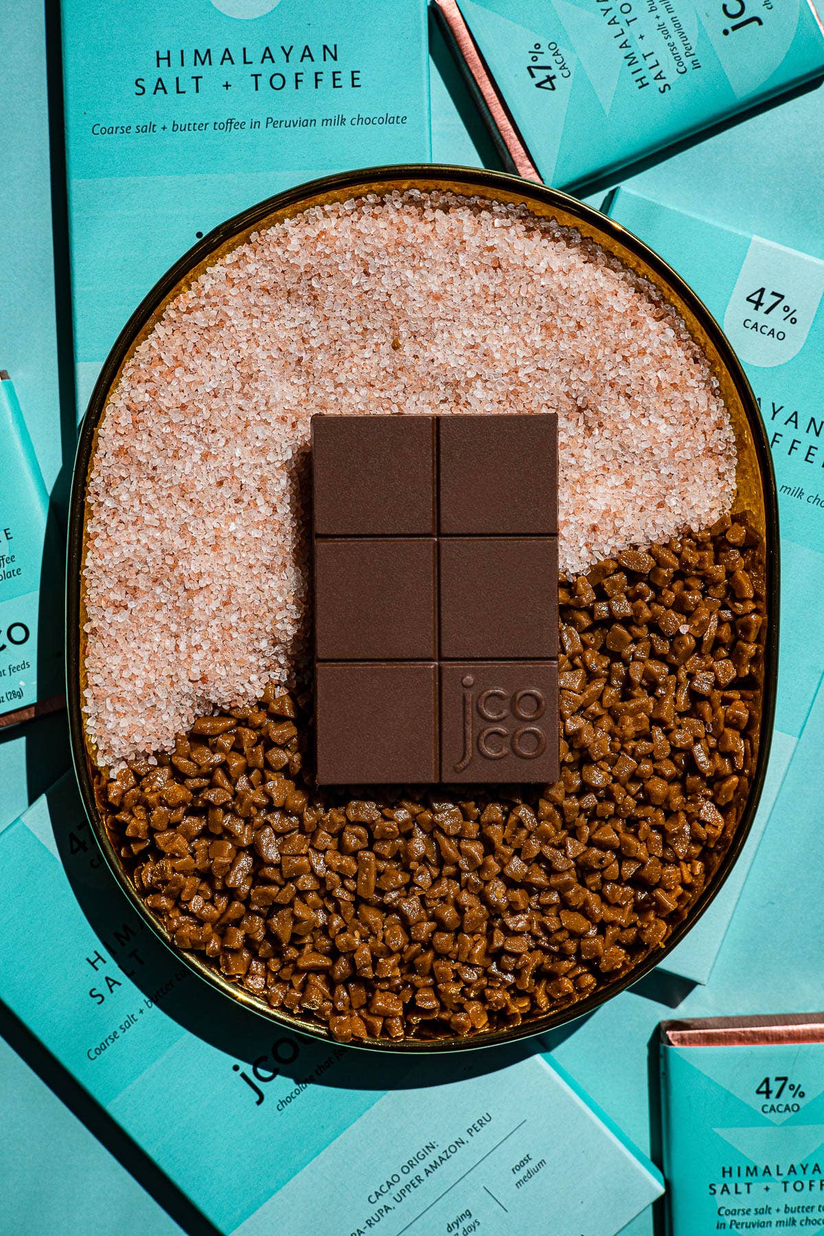 A combination of English-style toffee bits and salt mined from ancient sea salt deposits in the Himalayan Mountains in a high cacao percentage (47%) milk chocolate creates this elevated chocolate treat. The cacao origin is Rupa-Rupa, Upper Amazon region of Peru.